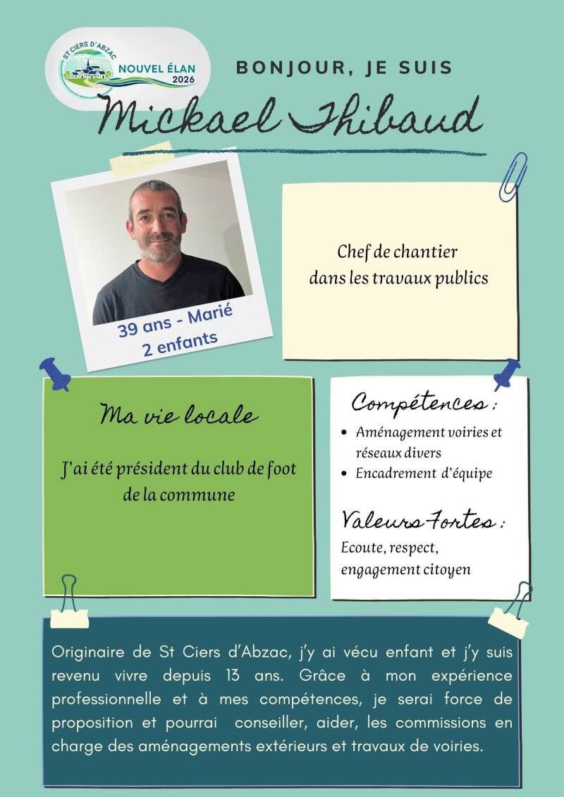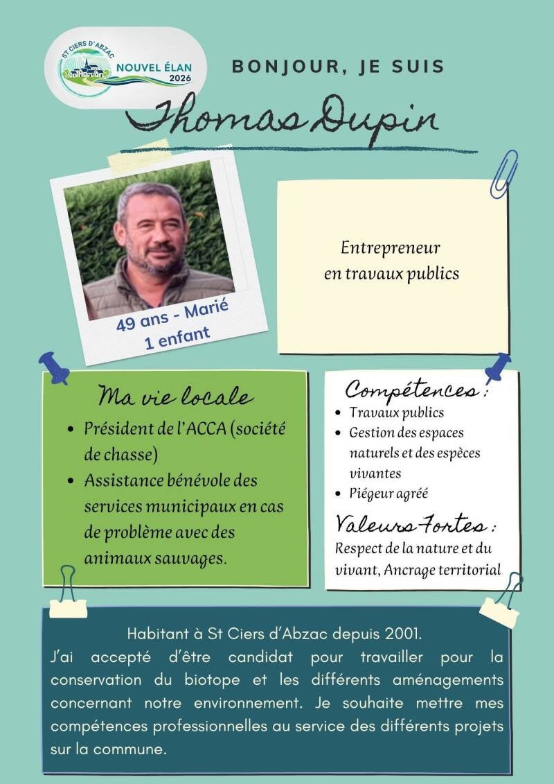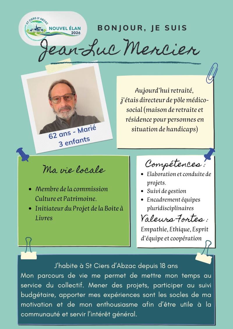 A partir du mois de mars 2026, je souhaite mettre en place une gestion transparente, améliorer la communication avec la population et donner la possibilité aux habitants qui le souhaitent de participer aux réflexions sur les dossiers en cours.